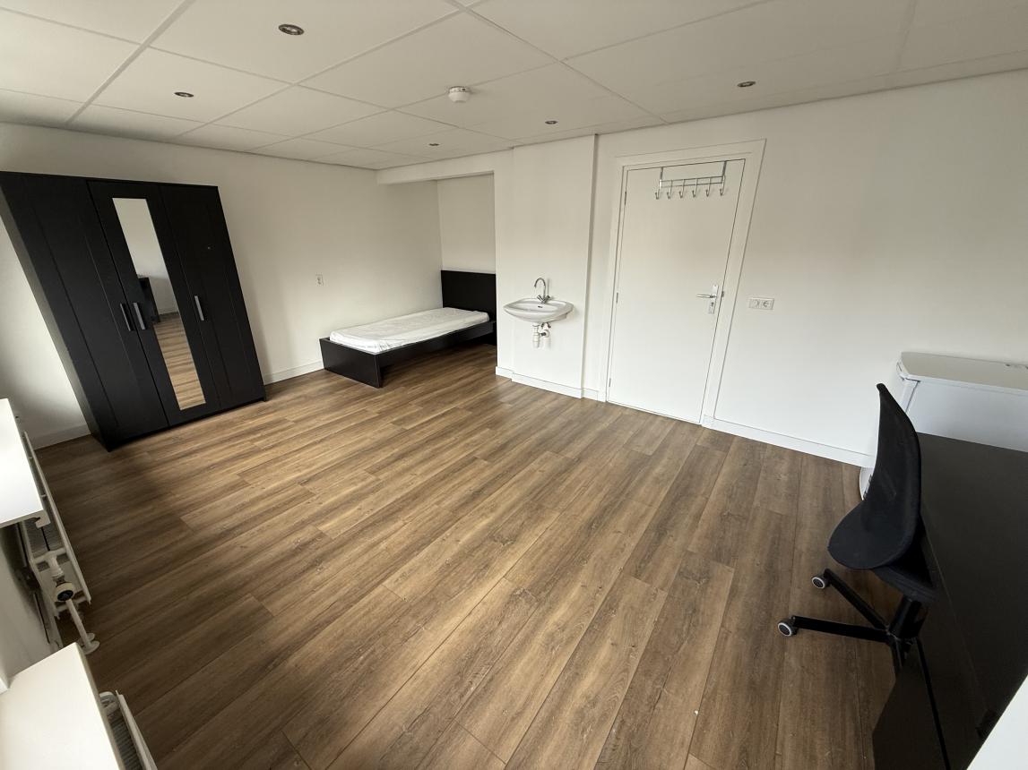 This spacious furnished room (24 m2) with its own sink is located on the second floor. You share the toilet and bathroom with shower with two other students. The kitchen is located on the first floor.