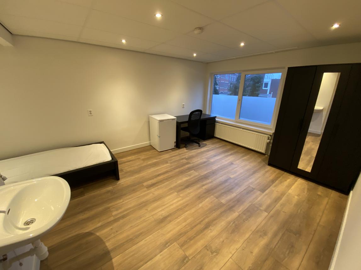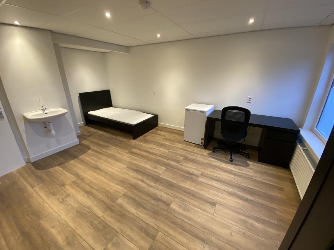 Deze leuke studentenkamer (16 m2) met eigen wasbak bevindt zich op de tweede verdieping. Samen met twee andere studenten deel je het toilet en badkamer met douche. De keuken bevindt zich op de eerste verdieping.